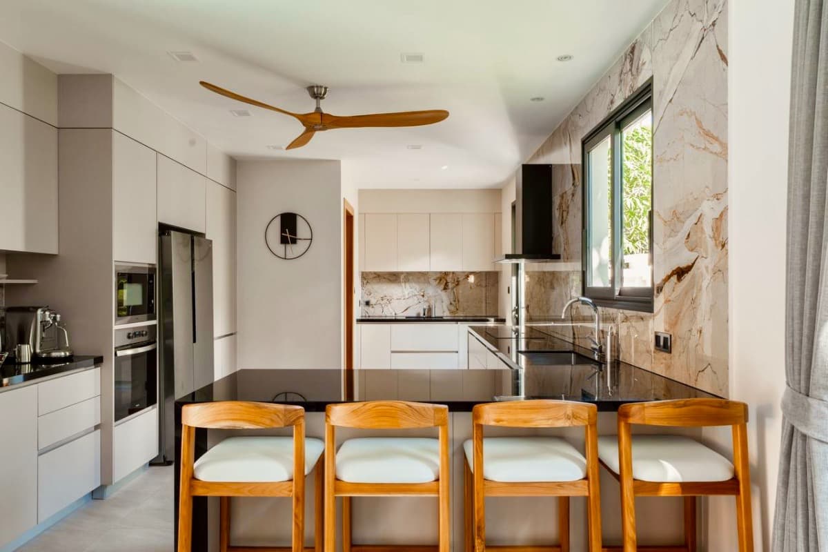 Интерьер выполнен в светлых, спокойных тонах с использованием натурального дерева, камня и текстиля премиум-класса. Каждая деталь продумана для комфорта: мягкая мебель, современное освещение, качественная техника и элегантный декор.